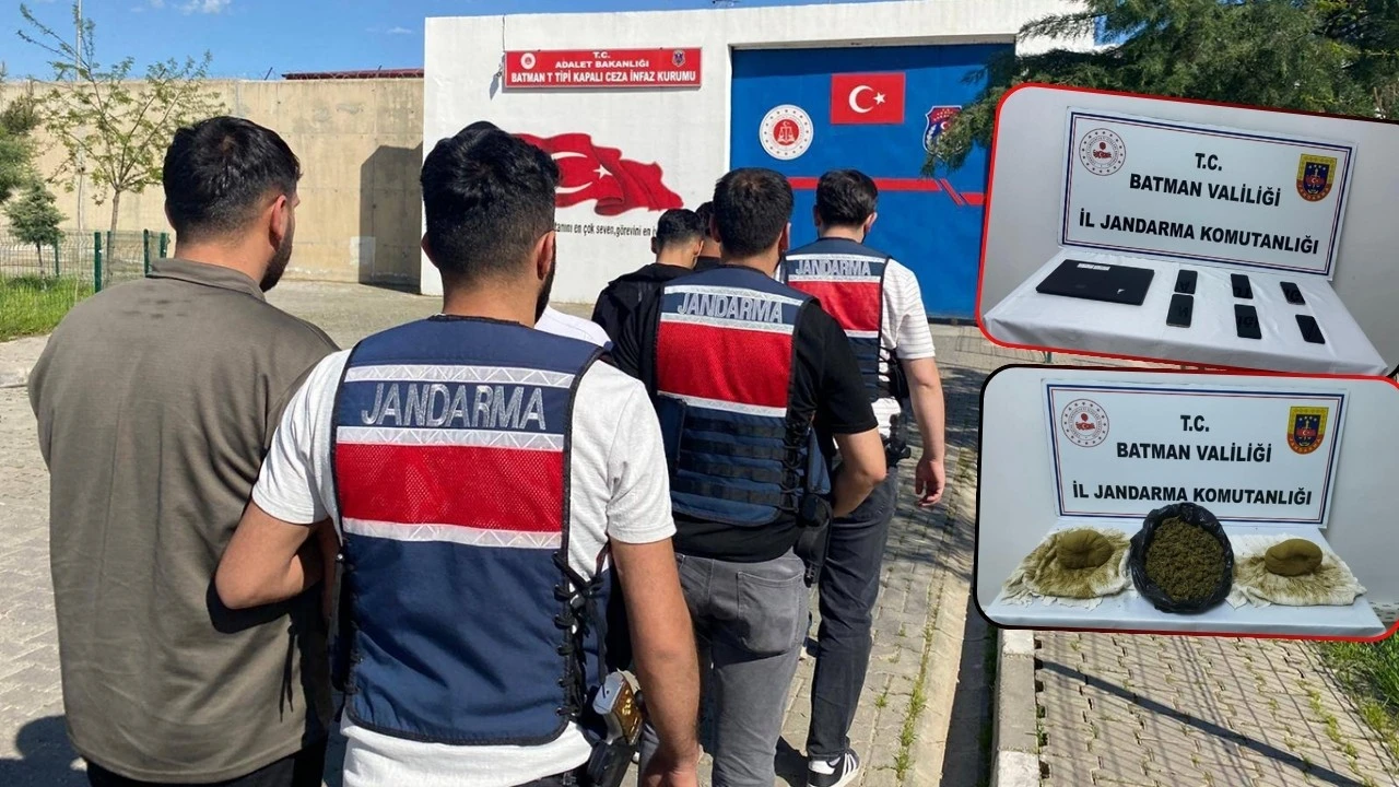 Adreste yapılan aramada 6 cep telefonu ve SIM kart, bir laptop ile 2,2 kilogram toz esrar ve 1,7 kilogram skunk ele geçirildi.