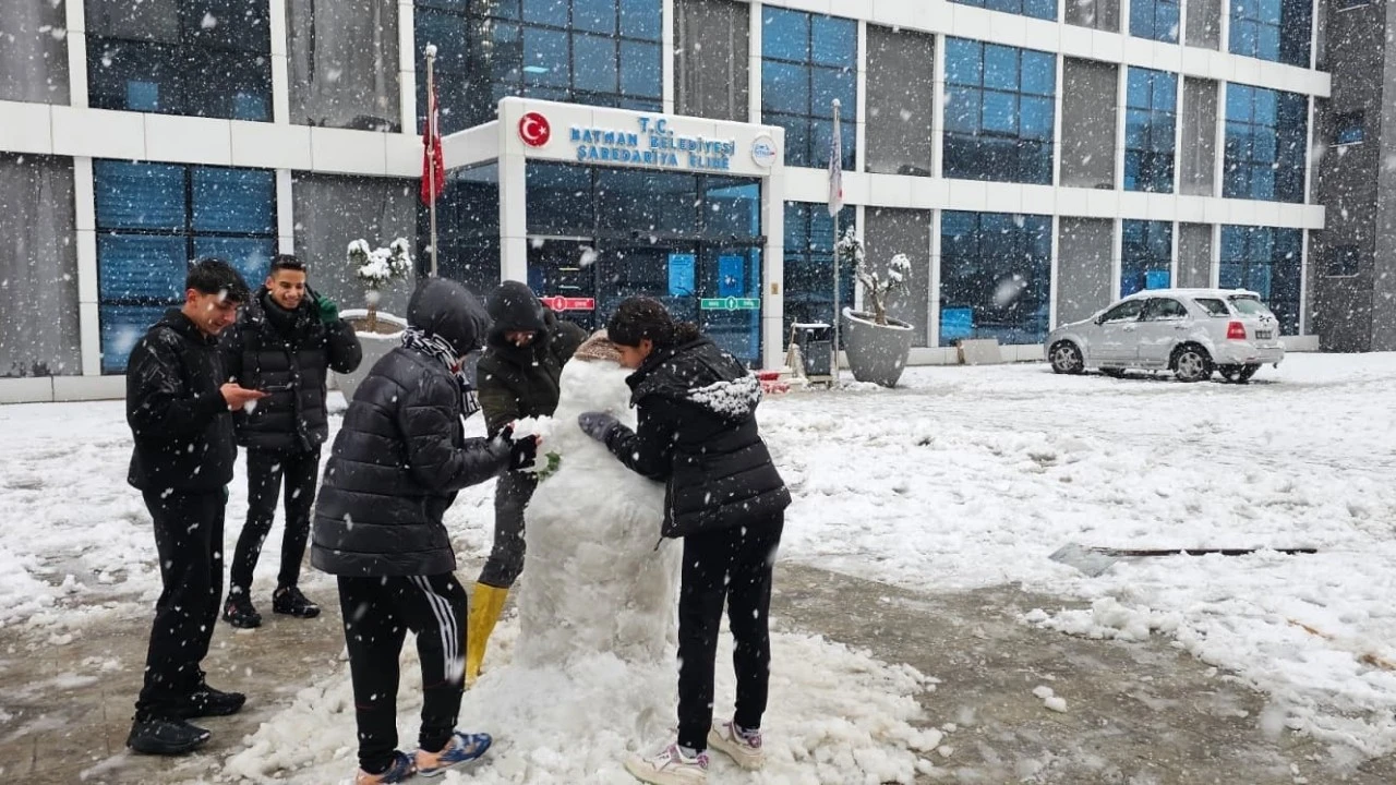 Batman Belediyesi Ek Hizmet Binası’nın bahçesi, karı fırsat bilen çocukların neşeli buluşma noktası haline geldi.