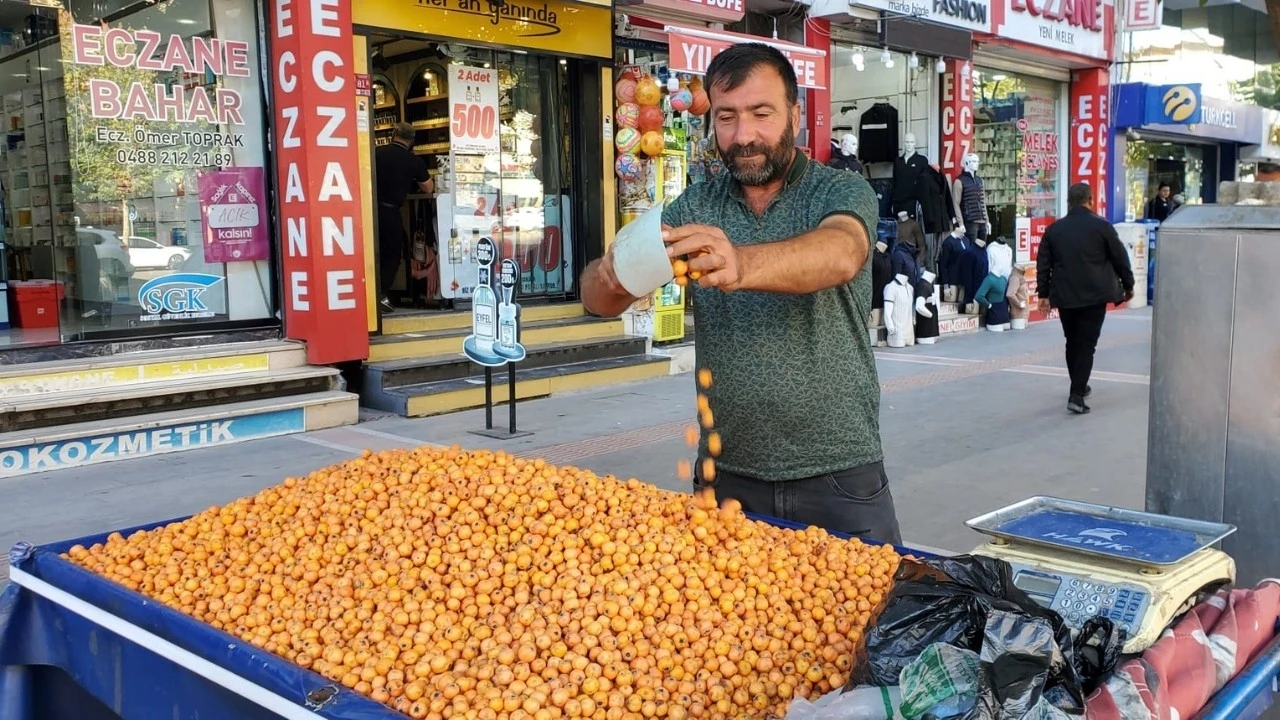 Batman sokaklarında 30 yıldır seyyar satıcılık yapan Mahfuz Acar, her mevsim farklı bir ürünle tezgâh açıyor. Bu günlerde ise alıç satarak geçimini sağlıyor.