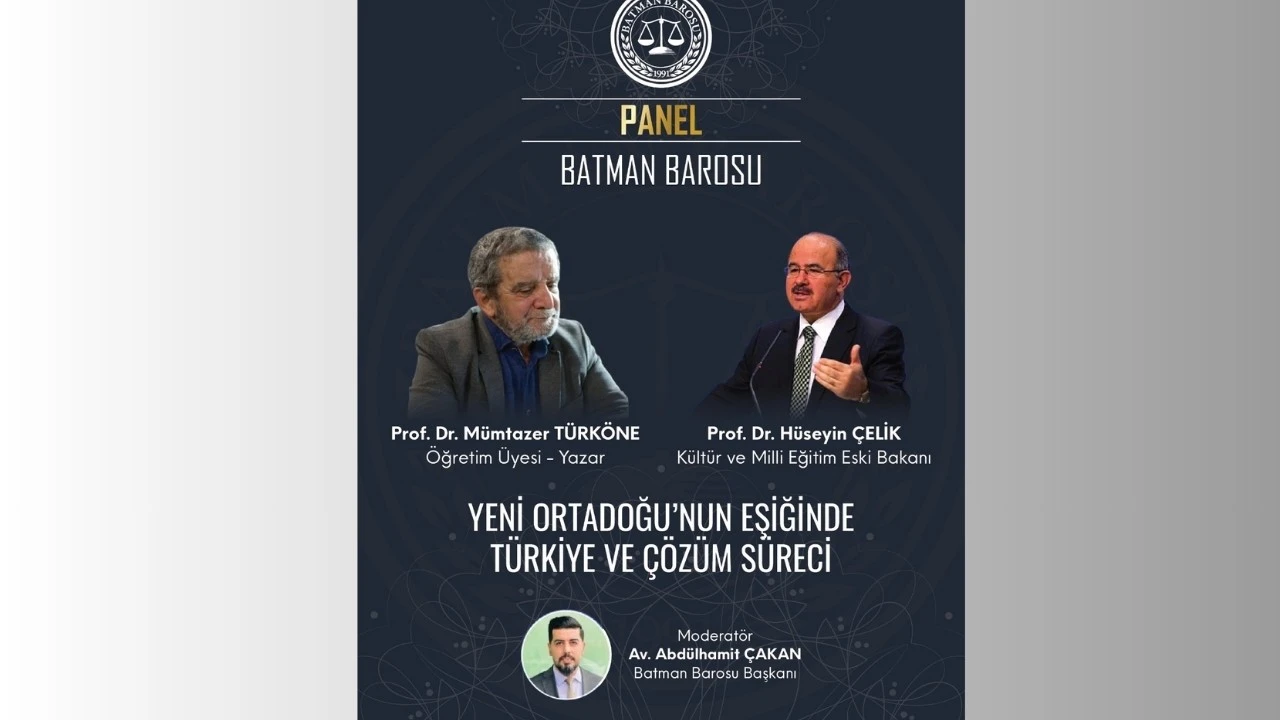 Batman Barosu, bölgesel gelişmeleri ve Türkiye’nin geleceğini yakından ilgilendiren “Yeni Ortadoğu’nun Eşiğinde Türkiye ve Çözüm Süreci” başlıklı önemli bir panele ev sahipliği yapacak.