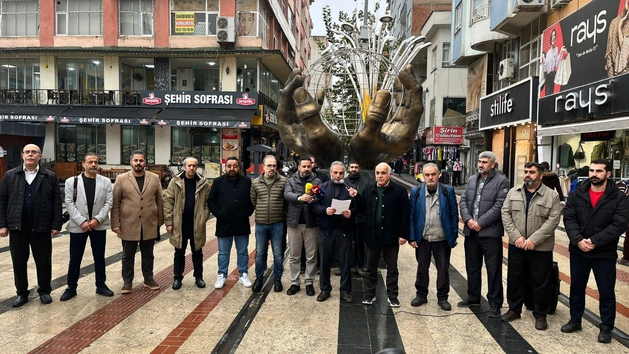 Gülistan Caddesi İnsan Hakları Anıtı önünde yapılan basın açıklamasını Batman Bağımsız Gazeteciler Derneği Başkanı Veysi Demir okudu.