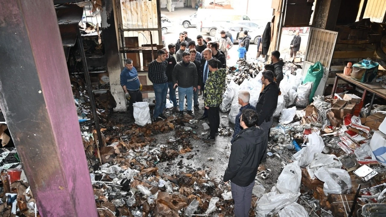 Yangında zarar gören işyerinde yetkililerden bilgi alan Vali Canalp, işyeri sahibi Abdulgani Açar ile görüşerek yangının çıkış nedeni ve meydana gelen hasara ilişkin detayları dinledi.