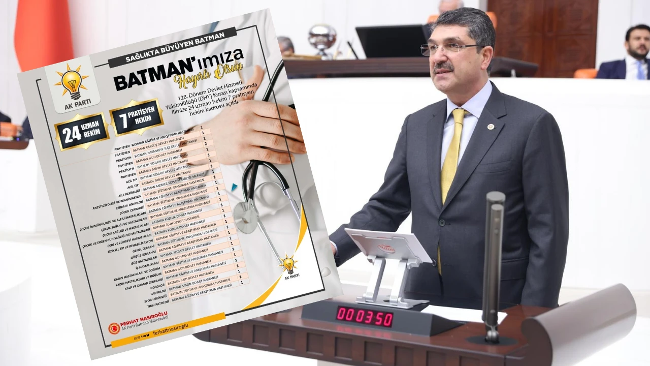 Nasıroğlu, Batman’a kazandırılan 31 hekim kadrosunun hayırlı olmasını dileyerek, Sağlık Bakanı Kemal Memişoğlu ve emeği geçenlere teşekkür etti.