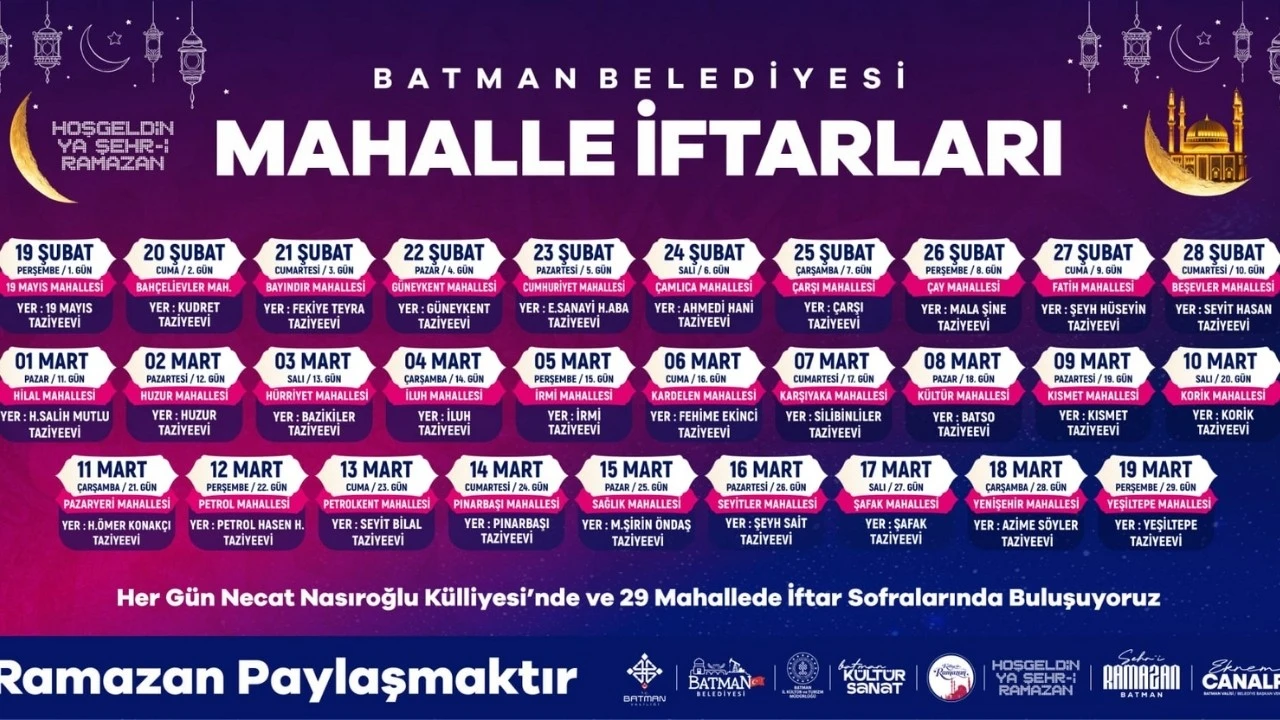 İşte gün gün mahalle iftarları takvimi: