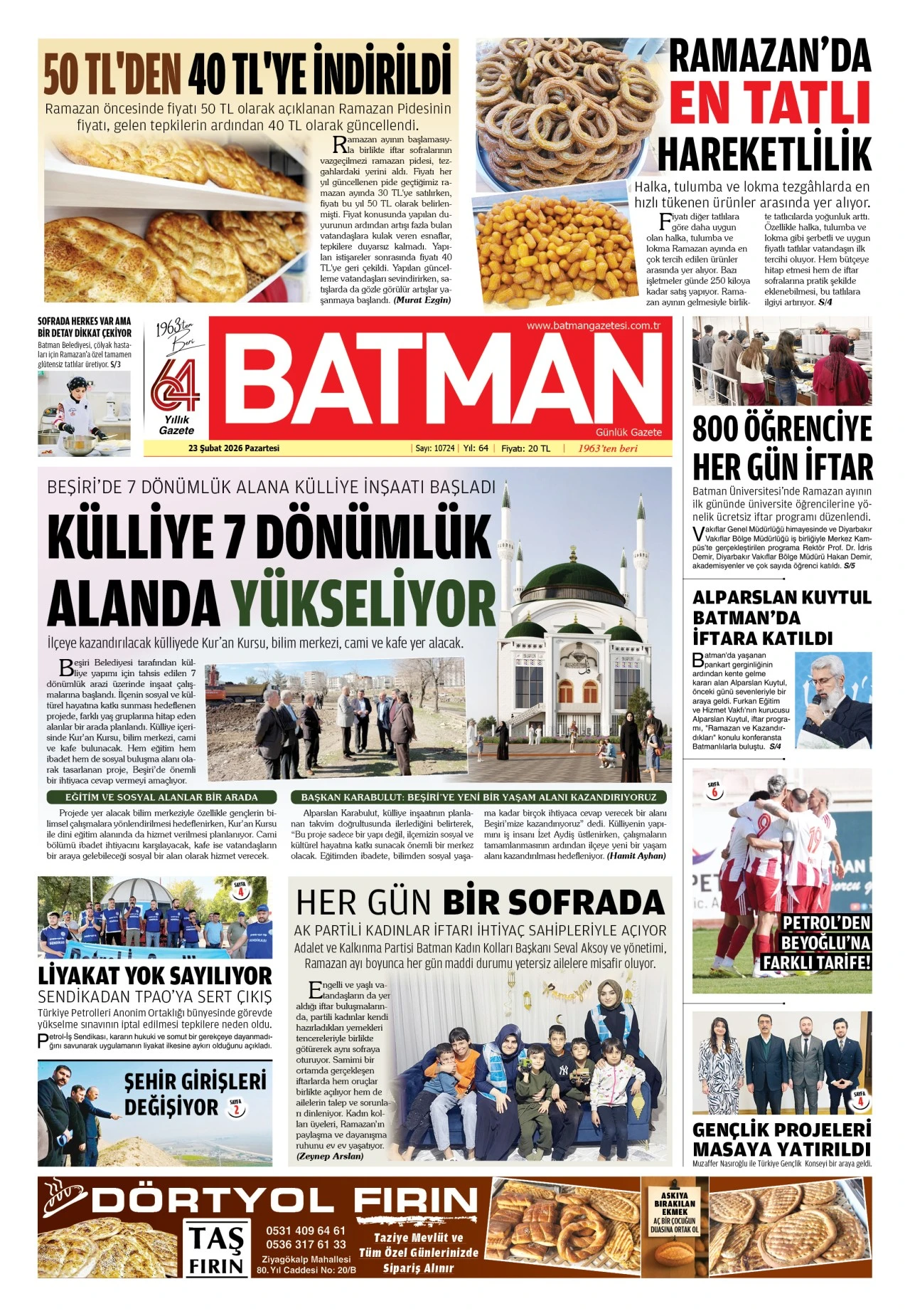 23 ŞUBAT 2026 PAZARTESİ