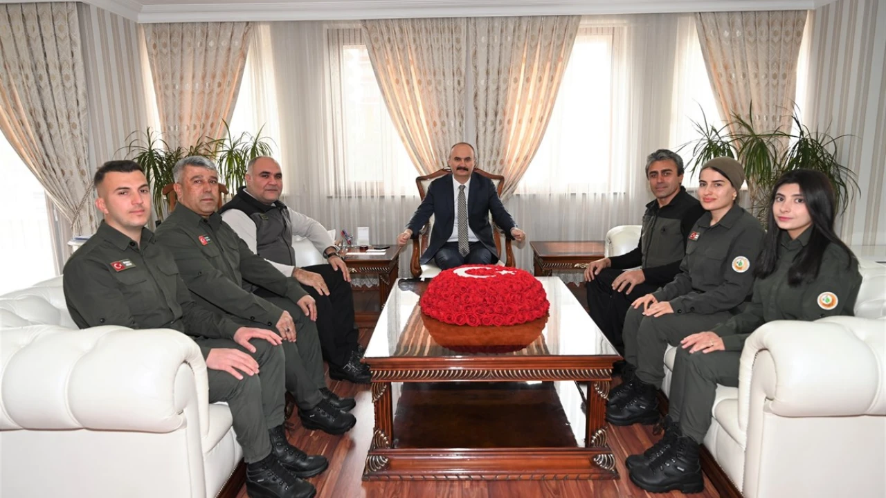Batman Orman İşletme Müdürü Mehmet Özcan, orman muhafaza memurları ile birlikte 21-26 Mart tarihlerinde kutlanan ‘Dünya Ormancılık Günü’ ve 'Orman Haftası’ münasebetiyle Vali Ekrem Canalp’i makamında ziyaret etti. <h4>Kabullerinden dolayı Vali Canalp'e teşekkür eden Orman İşletme Müdürü Özcan, hafta kapsamında gerçekleştirecekleri etkinlikler hakkında bilgi verdi.</h4> Daha yeşil bir Batman için gerçekleştirdikleri ağaçlandırma çalışmaları ve ormanlık alanların geliştirilip korunması konusundaki çalışmalarından dolayı İşletme Müdürü ve çalışanlarını tebrik eden Vali Canalp, çalışmalarında başarılar diledi.