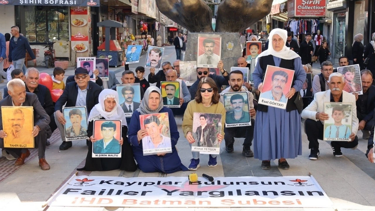 <div>İnsan Hakları Derneği (İHD) Batman Şubesi, kayıpların akıbetinin açıklanması ve faillerin yargılanması talebiyle düzenlenen “Kayıplar Bulunsun, Failler Yargılansın” etkinliğinin 709’uncu haftasında bir araya geldi.</div> <div>Bu hafta, 13 Kasım 1994’te Batman’da gözaltına alındıktan sonra bir daha kendisinden haber alınamayan Ahmet Yetişen’in dosyası gündeme getirildi.</div> <h4>İHD temsilcileri, yıllardır süren başvurulara rağmen soruşturmanın sonuçsuz kaldığını belirterek adalet çağrısını yineledi.</h4> <div>Açıklamada, gözaltında kayıpların unutulmayacağı ve failler bulunana kadar mücadelenin süreceği vurgulandı.</div> <div>Etkinlik, “Kayıplar bulunsun, failler yargı önünde hesap versin” çağrısıyla sona erdi.</div>