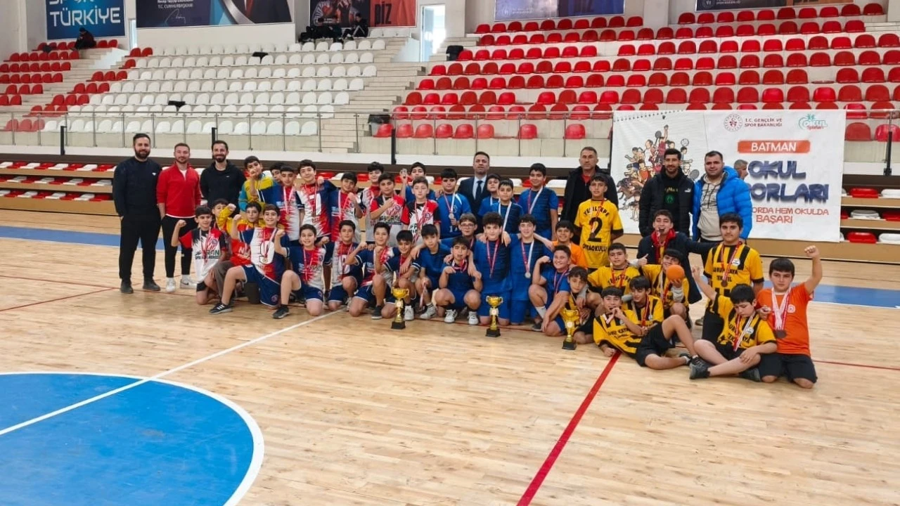 <div>19 Mayıs Spor Salonu’nda gerçekleştirilen müsabakalarda, 2 ayrı grupta toplam 6 ortaokul takımı il şampiyonu olabilmek için mücadele etti. Büyük heyecana sahne olan karşılaşmalar sonunda Petrol Ortaokulu, rakiplerini geride bırakarak il şampiyonu olmayı başardı.</div> <div>Bu önemli başarıyla Petrol Ortaokulu, Batman’ı ve okulunu grup müsabakalarında temsil etme hakkı kazandı. Turnuva sonunda dereceye giren okullara kupa, madalya ve katılım belgeleri; Okul Sporları Şube Müdürü Ömer Polat, okul müdürleri, antrenörler ve spor eğitim uzmanları tarafından takdim edildi.</div> <div>Okul Sporları Şube Müdürü Ömer Polat, turnuvaya katılan tüm okul takımlarını tebrik ederek, gençlerin spora olan ilgisinin memnuniyet verici olduğunu ifade etti.</div> <h3><strong>HENTBOL KÜÇÜK ERKEKLER İL DERECELERİ</strong></h3> <div>1 - Petrol Ortaokulu</div> <div>2 - Kültür Ortaokulu</div> <div>3 - Yeşiltepe Ortaokulu</div> <div>4 - Selahattin Eyyubi Ortaokulu</div> <div> </div>