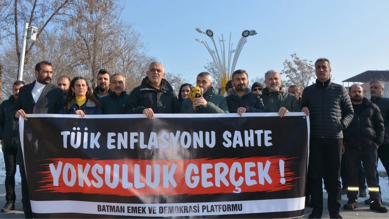 <div>Açıklama öncesinde Eğitim-Sen Batman Şube Eş Başkanı Ramazan Bilmez kısa bir değerlendirme konuşması gerçekleştirdi. Platform adına basın metnini ise SES Batman Şube Eş Başkanı Cihan Tüzün okudu.</div> <div>Açıklamada, TÜİK’in açıkladığı enflasyon verilerinin halkın çarşıda ve pazarda yaşadığı gerçek hayat pahalılığını yansıtmadığı savunuldu.</div> <div>Asgari ücretliler, emekliler ve kamu emekçilerinin maaş artışlarının resmi enflasyonun dahi altında kaldığı belirtilerek, milyonlarca emekçinin giderek daha fazla yoksullaştığı ifade edildi. TÜİK verilerine karşı İTO ve ENAG’ın açıkladığı enflasyon oranları hatırlatıldı.</div> <div></div> <h4>Platform, kira, gıda ve ulaşım gibi temel giderlerdeki artışların maaş zamlarını kısa sürede erittiğini, gelir vergisi adaletsizliğinin de kayıpları artırdığını vurguladı.</h4> <div>Açıklamada, 2024’ün “emekli yılı”, 2025’in ise “aile yılı” ilan edilmesine rağmen emekliler ve ailelerin yoksulluğa mahkûm edildiği dile getirildi.</div> <div>Batman Emek ve Demokrasi Platformu, emeğiyle geçinen tüm kesimleri yoksulluk ve sefalet politikalarına karşı birlikte mücadele etmeye çağırarak, 14 Ocak’ta hizmet üretiminden gelen gücün kullanılacağını duyurdu.</div>