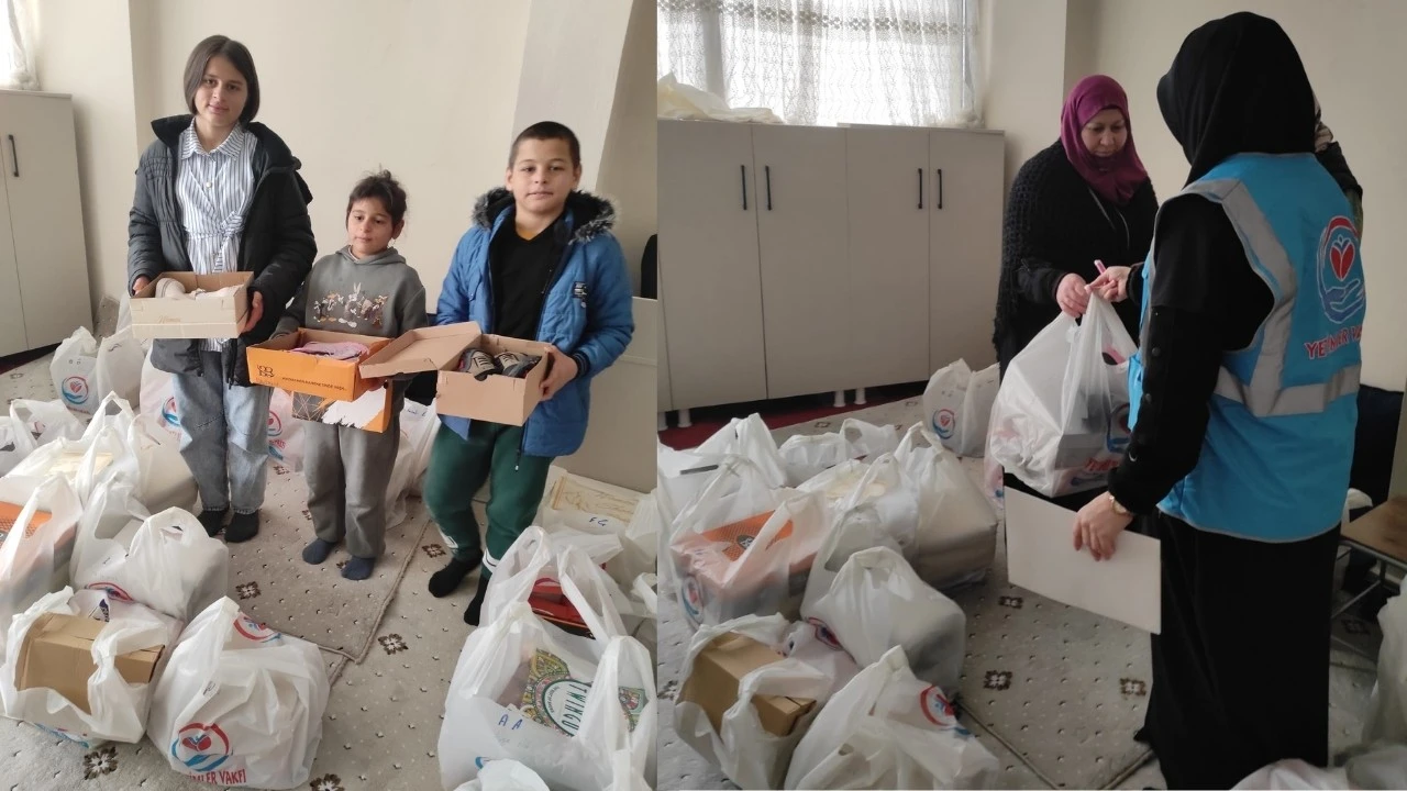 <div>Vakıf tarafından yürütülen çalışma kapsamında 110 yetim çocuğa ayakkabı dağıtılırken, 54 aileye market alışverişlerinde kullanılmak üzere 1000 TL tutarında hediye çeki verildi.</div> <h4>Yetimler Vakfı yetkilileri, yardım organizasyonunun hayırseverlerin katkılarıyla gerçekleştirildiğini belirterek destek veren sponsorlara teşekkür etti.</h4> <div></div>