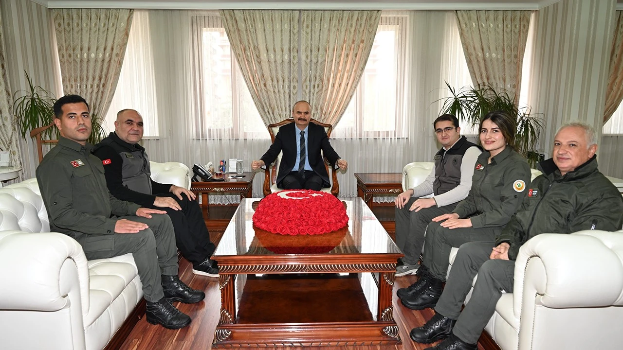 <div>21-26 Mart tarihleri arasında kutlanan Orman Haftası dolayısıyla Orman İşletme Müdürü Mehmet Özcan ve beraberindeki orman muhafaza memurları, Vali Ekrem Canalp’i makamında ziyaret etti.</div> <div>Ziyarette Orman İşletme Müdürü Özcan, kabulünden dolayı Vali Canalp’e teşekkür ederek, ormanların korunması ve geliştirilmesine yönelik yürütülen çalışmalar hakkında bilgi verdi.</div> <div>Vali Canalp ise daha yeşil bir Batman hedefi doğrultusunda sürdürülen ağaçlandırma faaliyetleri ve kentin yeşil dokusunun güçlendirilmesine yönelik çalışmalar dolayısıyla Orman İşletme Müdürlüğü personeline teşekkür ederek, çalışmalarında başarılar diledi.</div>