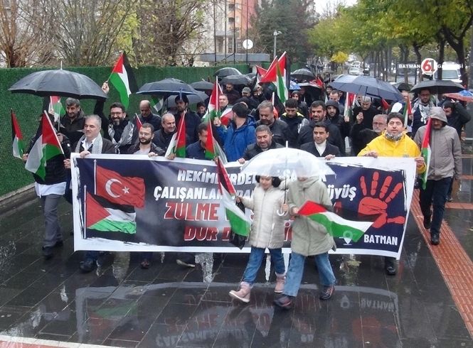 <div>Batman'da bir araya gelen çok sayıda hekim ve sağlık çalışanı, İsral'in Gazze'deki işgal ve katliamlarını düzenlediği yürüyüşle protesto etti.</div> <div>Batman Park önünde kortej eşliğinde başlayan yürüyüş, Atatürk Parkına kadar sürdü.</div> <div>Yürüyüş esnasında sık sık işgalcilerin aleyhine slogan atan sağlıkçıların beyaz önlük giydiği ve pankart taşıdığı protesto gösterisi Atatürk Parkında yapılan basın açıklamasıyla devam etti.</div> <div>Basın açıklamasını okuyan Doktor Hüseyin Arpağ, 7 Ekim'den bu yana Gazze'de işgalci siyonist saldırılarında şehid olanların ve kayıpların sayısının 27 bini geçtiğini söyledi.</div> <div><strong>"99 HEKİM VE SAĞLIK ÇALIŞANI İŞGALCİLERCE ALIKONULDU"</strong></div> <div>Şu ana kadar 8 bin çocuk, 6 bin 200 kadının katledildiğini, 310 sağlık çalışanı, 97 hekimin öldürüldüğünü aktaran Arpağ, "Şifa Hastanesi başhekimi, El Awda Hastanesi Müdürü dahil 99 hekim ve sağlık çalışanı işgalciler tarafından tutuklandı. Hastanelerden, ailelerinin yanından gözaltına alınıp kıyafetleri zorla çıkartılarak elleri bağlı şekilde bilinmeyen yerlere götürülüp alıkonulan sivillerin katledildiği haberleri geliyor" dedi.</div> <div></div> <div><strong>Hüseyin Arpağ</strong></div> <div><strong>"ENKAZLAR KALDIRILAMIYOR"</strong></div> <div>İşgalcilerin insanlığa ait tüm değer ve sınırları çiğneyerek katliamlarına devam ettiğine dikkat çeken Arpağ, "52 bin 600 konut, 282 okul ve üniversite, 126 hükümet binası, 112 cami, 90 okul ve üniversite binası, 23 hastane, 53 sağlık ocağı bombalarla tamamen yıkıldı. 102 ambulans imha edildi. 254 bin konut, 200 cami, 3 kilise, 140 sağlık kuruluşu hedef alındı, tahrip edildi ve kullanılamaz durumda. Enkazlar kaldırılamıyor, yaralılara ulaşılamıyor." diye konuştu. 7 bin kişinin hâlâ kayıp olduğunu belirten Arpağ, "Kayıpların yüzde 70'i çocuk ve kadınlardan oluşuyor. Gazze Şeridi'nde yerinden edilen 1.9 milyon Filistin halkı; barınma, gıda, temiz su, ilaç ve sağlık hizmetinden yoksun şekilde yaşam mücadelesi veriyor. 355 bin kişi çeşitli bulaşıcı hastalıklara yakalandı. Bin 34 çocuk, kanser veya diyaliz hastası, 10 bin kanser hastası, 45 bin hamile ve 68 bin emziren kadın bakıma muhtaç halde, kansızlık, kanama ve ölüm riskiyle karşı karşıya. Hastaneler zorla boşaltıldı, artık neredeyse hiçbir sağlık hizmeti verilemiyor." ifadelerini kullandı.</div> <div><strong>"YARALILAR İÇİN GEÇ KALINMIŞ OLACAK"</strong></div> <div>53 bin yaralının olduğuna dikkat çeken Arpağ, konuşmasına şöyle devam etti:</div> <div>"Çok acil tıbbi müdahale yapılmazsa 5 bin yaralı için artık çok geç kalınmış olacak. Bu dehşet tabloyu seyreden Dünya Sağlık Örgütü, Birleşmiş Milletler, Uluslararası İnsan Hakları Örgütleri, NATO... Sizlere sesleniyoruz: İnsan hakları ve uluslararası hukuk kuralları açıkça ihlal ediliyor. Binlerce sivil, kadın ve çocuk acımasızca katlediliyor. Dünya’daki bütün protesto ve kınamalara rağmen israil pişkince ve göz göre göre savaş suçu işlemeye devam ediyorken; İnsanlıktan, vicdandan, hak ve hürriyetten ve ırkçılık karşıtı söylemlerden bahsettiğinizde samimiyseniz, bu zulmü durdurmak için daha neyi bekliyorsunuz?"</div> <div> </div>