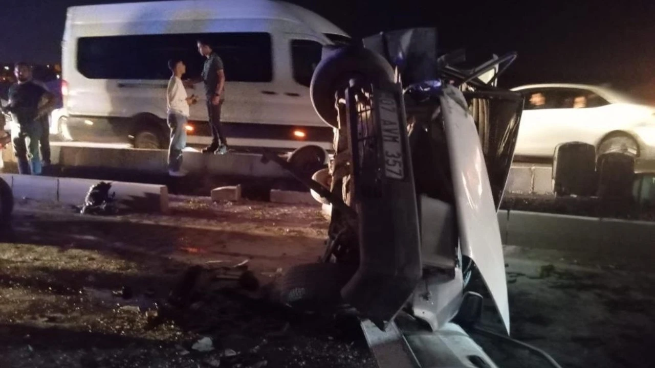 Direksiyon hakimiyetini kaybeden sürücü, takla atan araçla yoldan çıktı. Bu sırada arkadan gelen bir başka araç da devrilen otomobile çarptı.