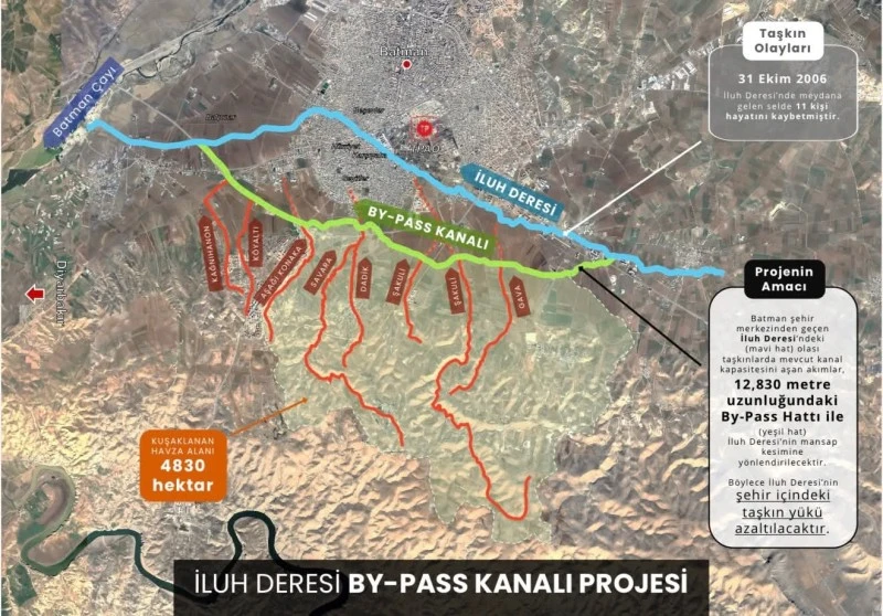 batman Valiliğinin Cuma günü kamuoyuyla paylaştığı “İluh Deresi By- Pass Kanalı Projesi” için çalışmalar en kısa zamanda başlayacak. Batman Merkeze bağlı Binatlı köyüne varmadan yerleşim alanlarına yakın bir noktadan başlayan By- Paas Hattının Batı Raman eteklerinden devam ederek, Karayün Köyünün alt taraflarından Balpınar bölgesine geçişi sağlanacak ve yerleşim yerlerinin bitiş noktasında yeniden İluh Deresiyle birleştirilerek sorunsuz bir şekilde Batman Çayına tahliye edilecek. Bu geçiş esnasında hem başlangıç noktasından gelen hem de Batı Raman’da Batman’a şehir merkezine gelen, yaklaşık 5 bin hektarlık alandaki sel sularını da yerleşim alanlarına ulaşmadan tahliye ederek olası facianın önüne geçecek. Batmanlılar için hayati önem taşıyan proje, İluh Deresi sakinleri başta olmak üzere tüm Batmanlılar da büyük sevinç yarattı.