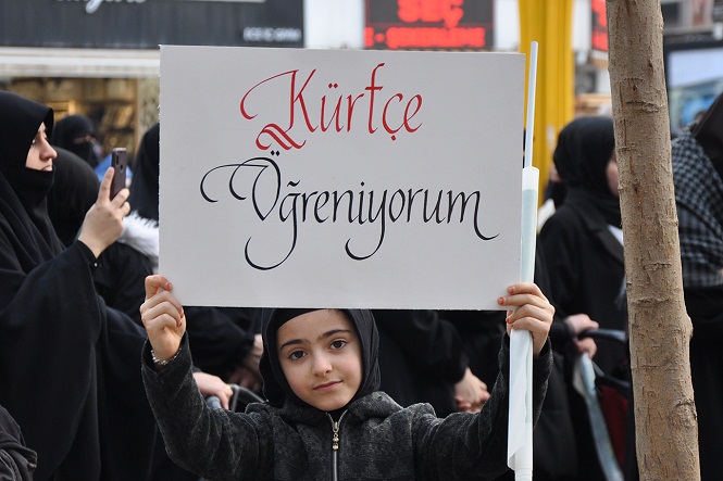 Basın açıklaması Kürtçe ve Türkçe olmak üzere iki ayrı şekilde okundu. Kimi vatandaşların çocuklarıyla birlikte giydikleri yöresel kıyafetleriyle etkinliğe katıldığı görüldü.